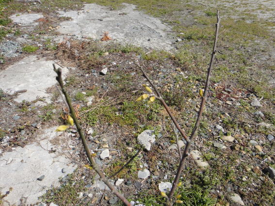 チューリップの蕾も顔を出しています
