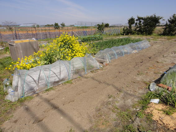 それに枝豆とゴボウの種を蒔きました 今はビニールのトンネルですが