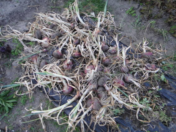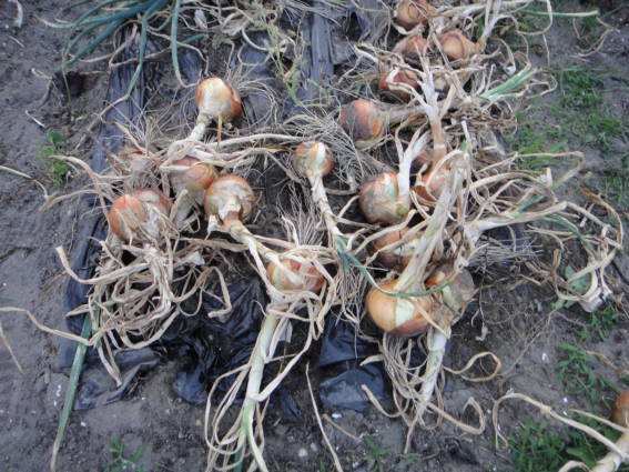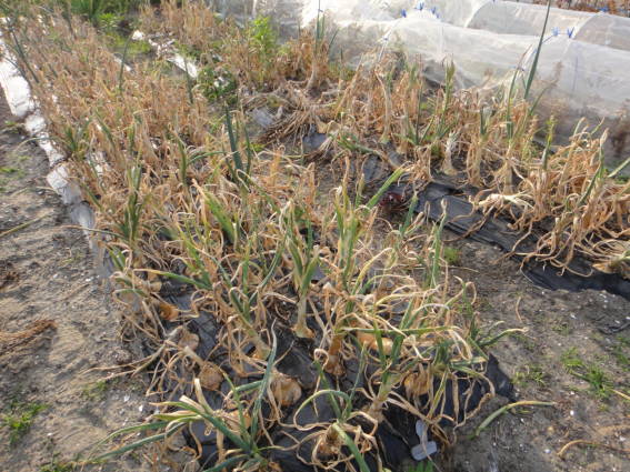 こちらは もう採ってくれよ と 疲れきったタマネギたちです