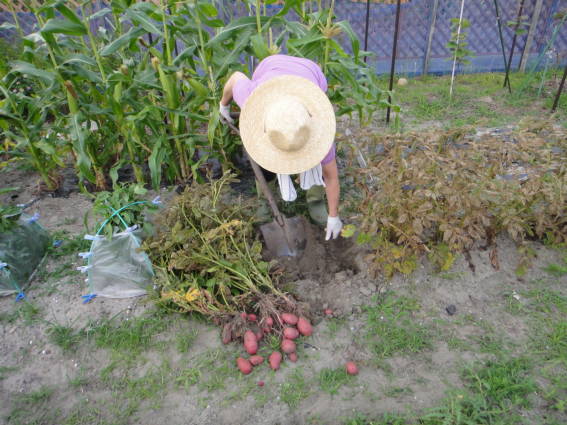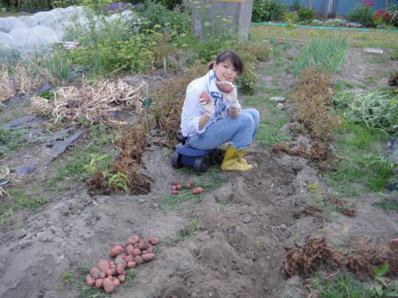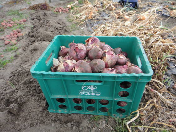 ゆり様と3人で農場に行きました ジャガイモ掘りとタマネギの収穫が