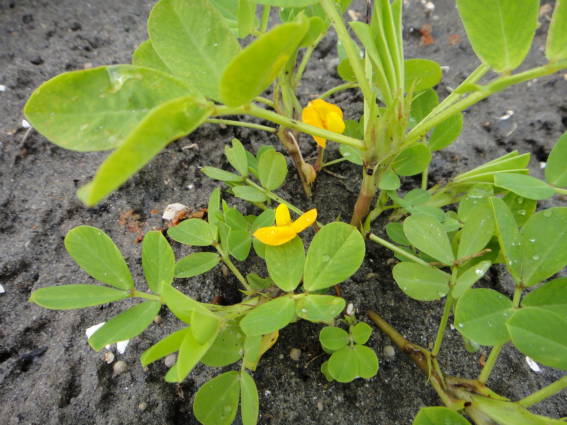 落花生には草木灰 苦土石灰 化成肥料を少々与え 雑草取りもしました