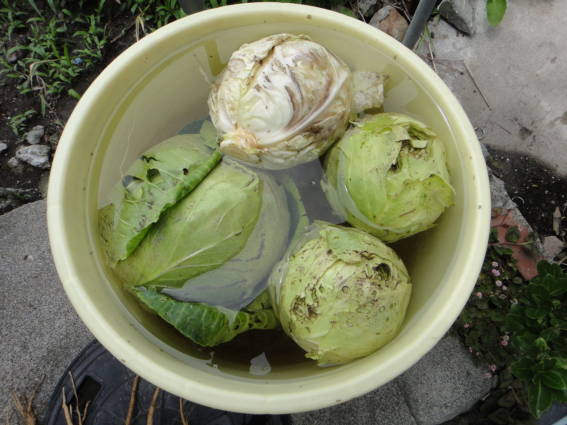 こちらは虫に喰われ放題のキャベツです 外葉をかなり除きました