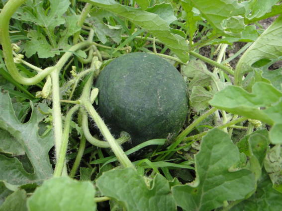 黒スイカの一番手です 玉直し(ひっくり返しました)したので