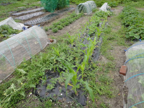 トウモロコシの左にも枝豆を蒔きました これは必要ならば