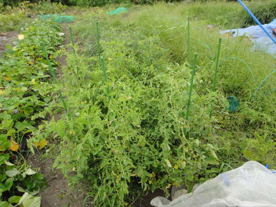 野菜ちゃんが雑草に囲まれて….. 泣いているだけでは話にならないので