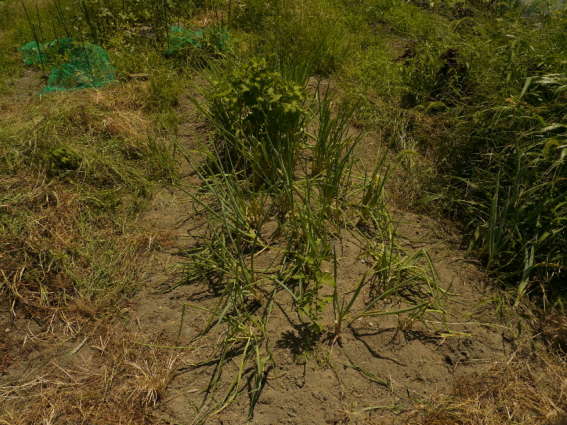 ネギは雑草に囲まれてちょうど良い細さになっていました
