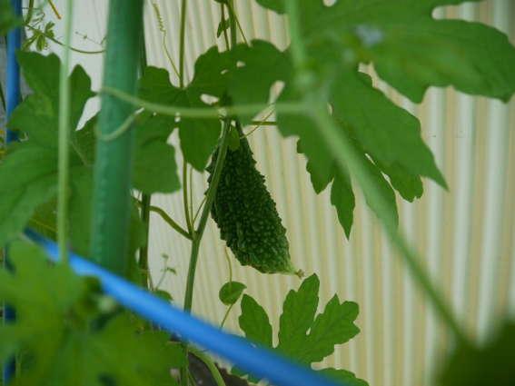 ゴーヤが成長しています ナスは今イチ冴えませんが