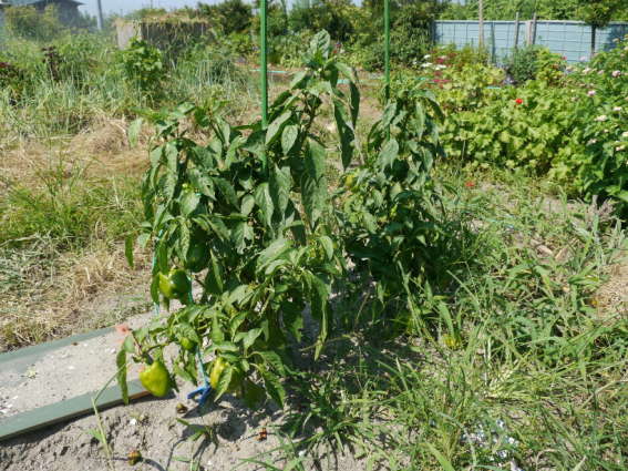 手前は赤色のパプリカ2本 向こうはペピーノ2本です