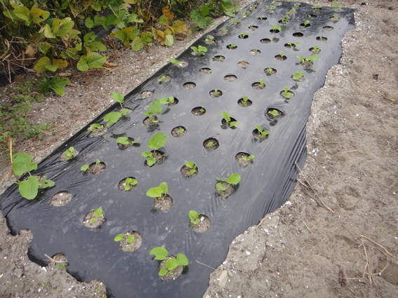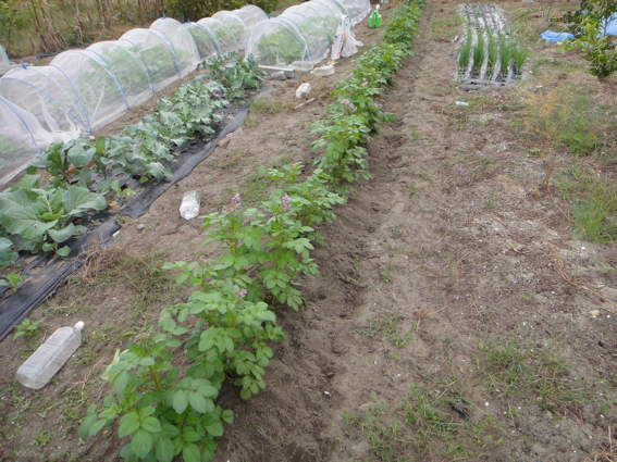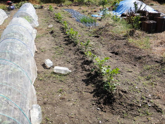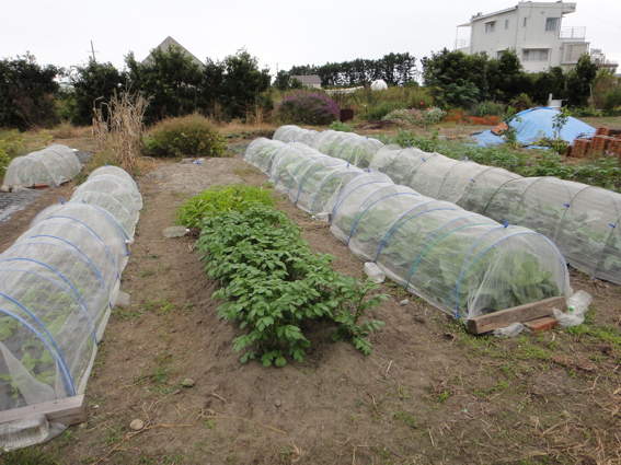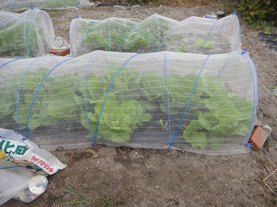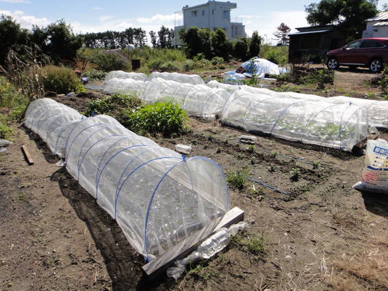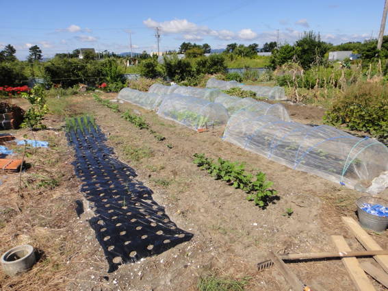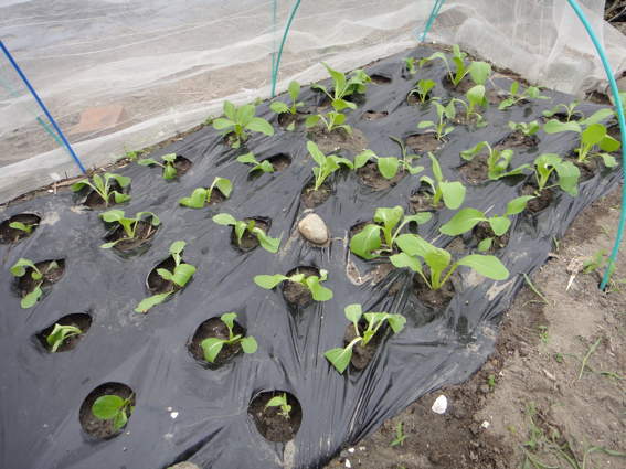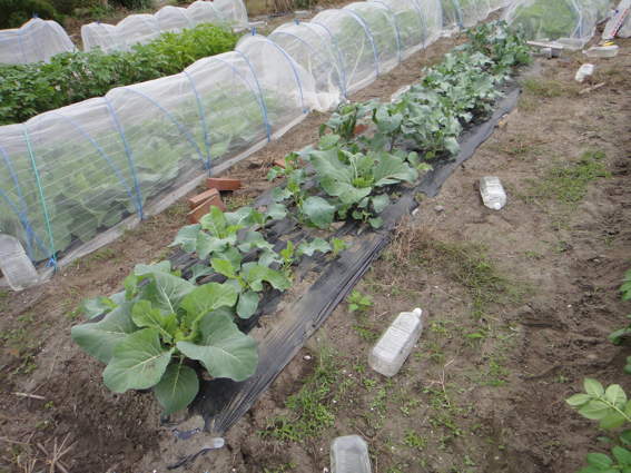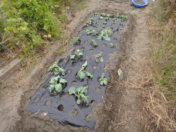 ここにカリフラワーやブロッコリーやチンゲンサイを移植しました