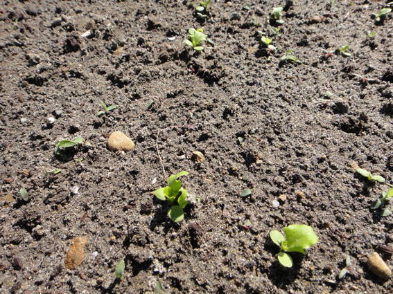 チンゲンサイを一穴に5~6粒蒔いたので 一本立ちさせました