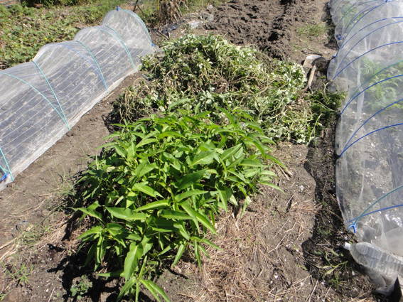 ちょっと左の畝のニンニクの芽の出具合が悪いので 今度ちゃんとした