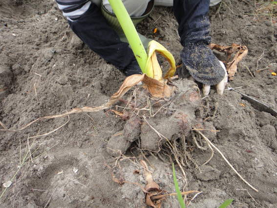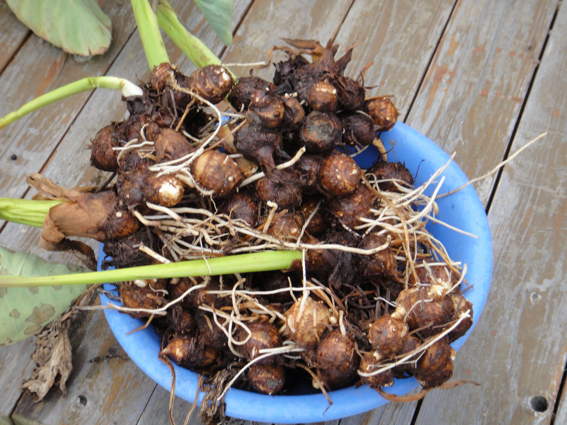 今年の夏は雨があまり降らなかったのでサトイモが小ぶりです