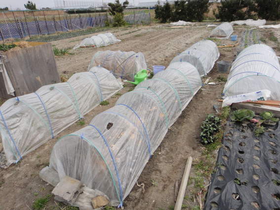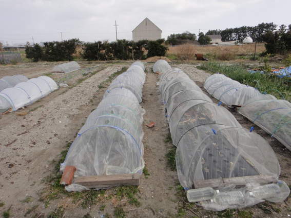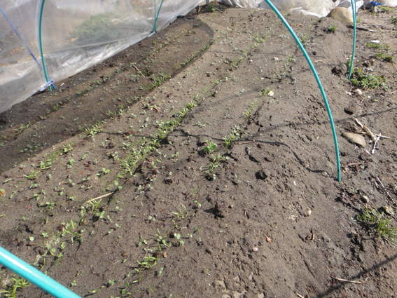 蒔いてからビニールトンネルで保護した第二陣です