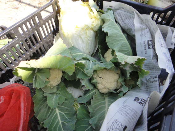 手前は大根と里芋 一つ向こうはブロッコリーとカリフラワーでしたが