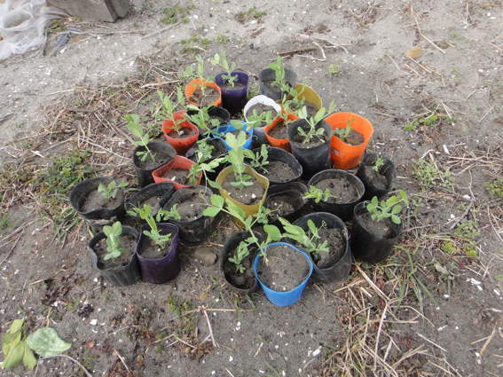 収穫作業の後は安城から持ってきた花の苗の移植や
