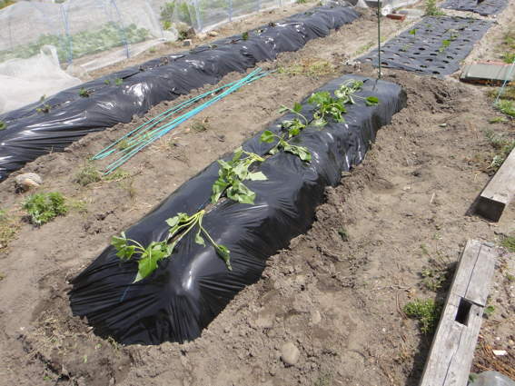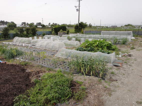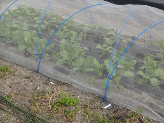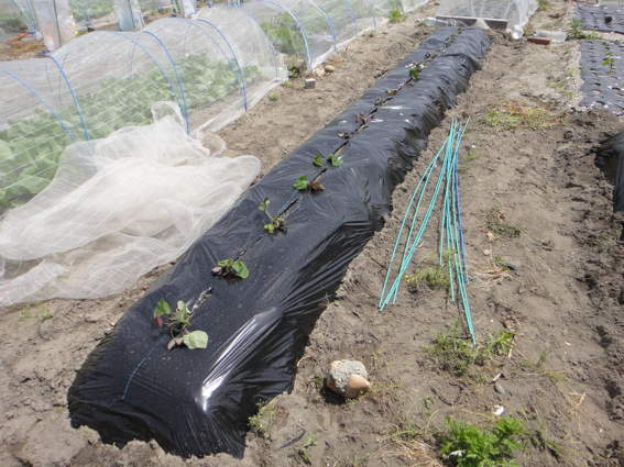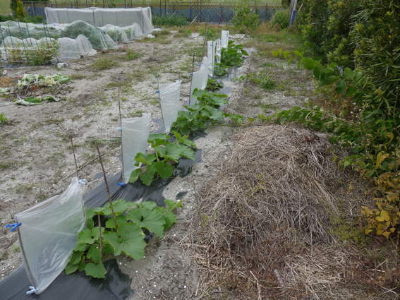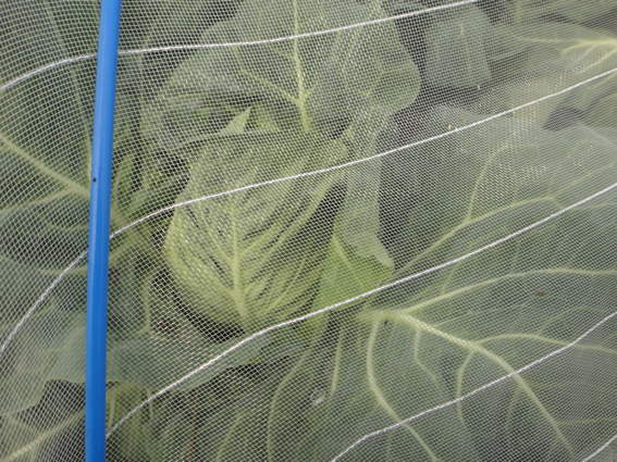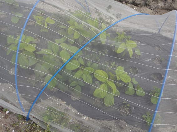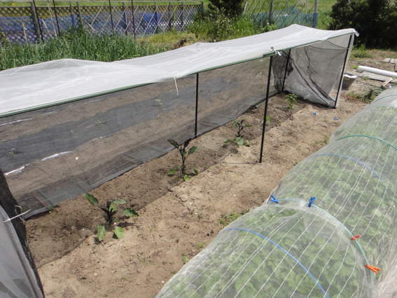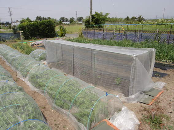 ここは防風ネットと防虫ネットでナスを保護するところです