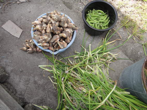ワケギは種球がいっぱい採れました ラッキョウは上が枯れてから
