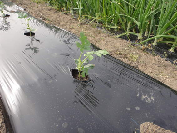 近所の方からいただいたメロンの苗を植えました