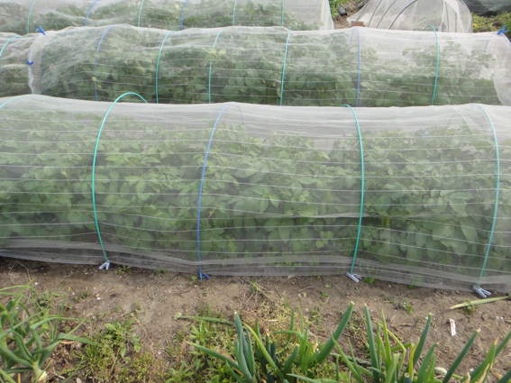 防虫ネットのトンネルにビッシリのジャガイモたち