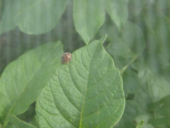 防虫ネットを張らなければ無数のテントウムシダマシが葉っぱを