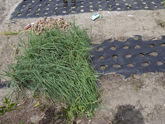 大きさが分かるようにゆり様と収穫したニンニクたち