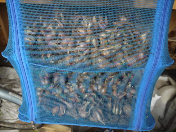 これは先週収穫したニンニクです 吊して保存するために