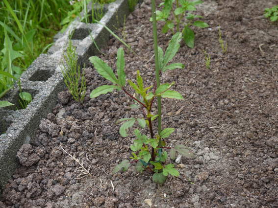ここにローゼルハイビスカスを2本植えてあります