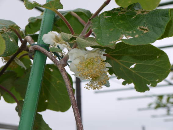 ガーン! キウイのオス花は咲いていたのですが メスが…..