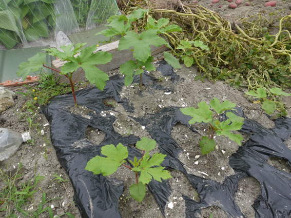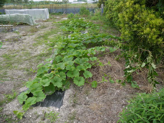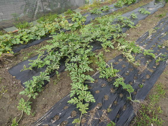 夏の間は葉物の野菜はうまく育ちませんので スイカ カボチャ