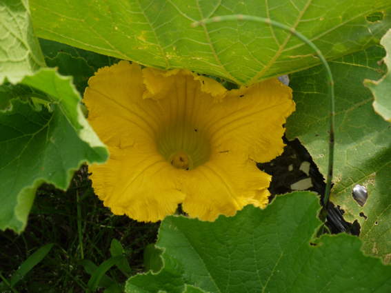 朝見回りましたらカボチャの雌花が咲いていましたので