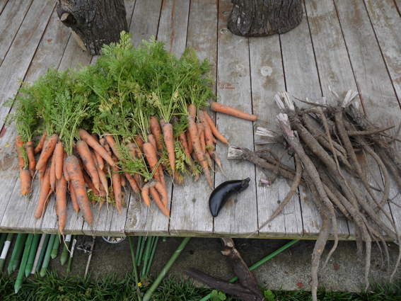 人参は全部収穫しました ゴボウも収穫 真ん中のは箱入り娘のナスです