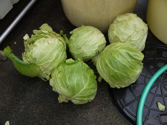 ちょっと爆発したのもありますが キャベツを5個収穫しました
