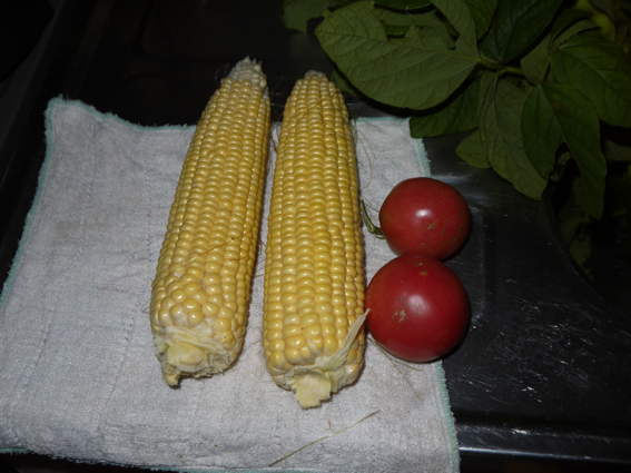 初物のトウモロコシ2本を収穫して夕食時に食べました