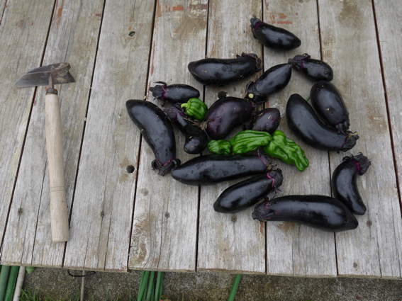 ほーら ナスが沢山収穫できましたよ ピーマンもついでにちょっと