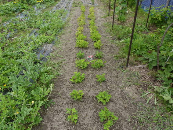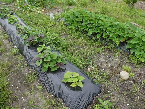 左の畝には右の鳴門金時の芽を切って移植してあります