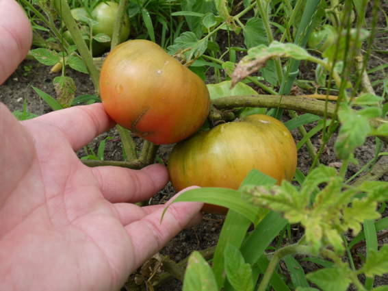 これ ちょっと傷物ですが 最初のトマトです