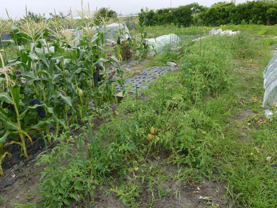 トウモロコシ 枝豆 トマト ナス ピーマン それに空心菜ですかね