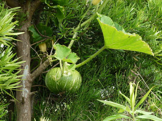 木に這い上がった蔓からもカボチャが出来ていますよ