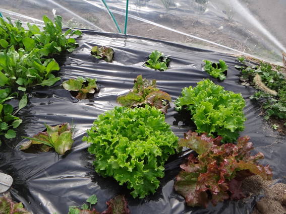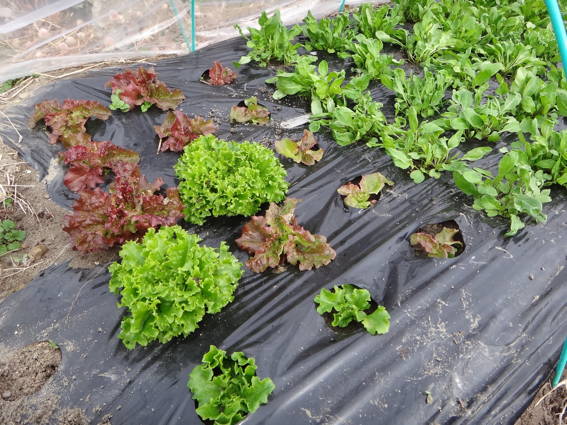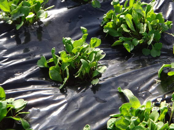 ルッコラを間引き収穫するためにトンネルを開けました