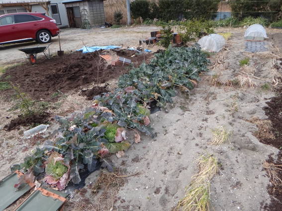 今朝は春野菜のために耕耘機で畑を耕しました