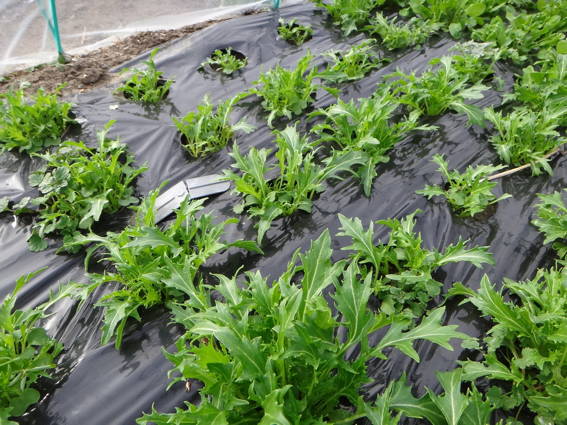 水菜があっという間に大きくなっています ビニールトンネルの威力です
