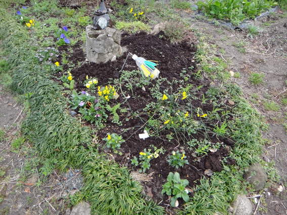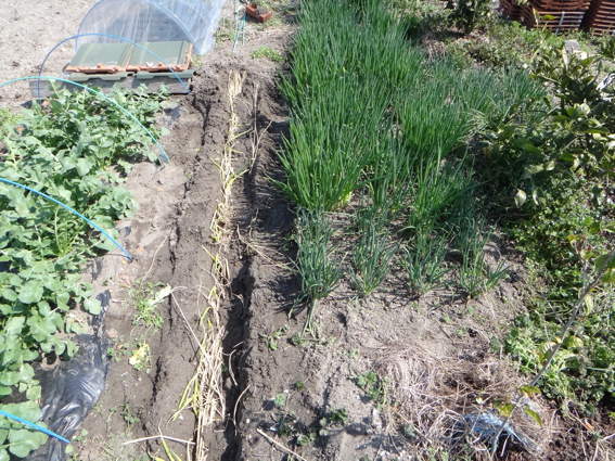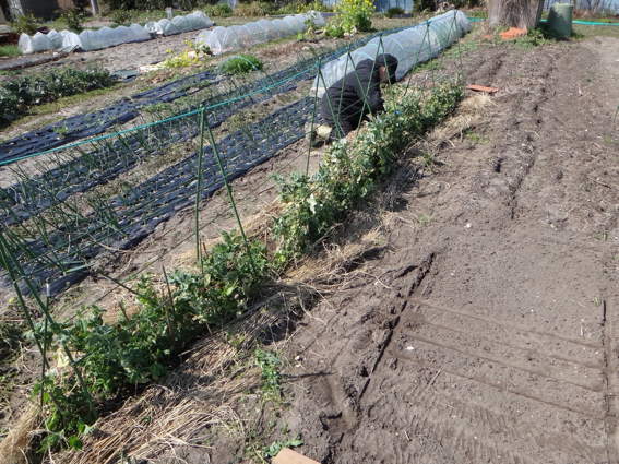 中央の何も出ていない畝はキタアカリ(ジャガイモ)を植えてあります