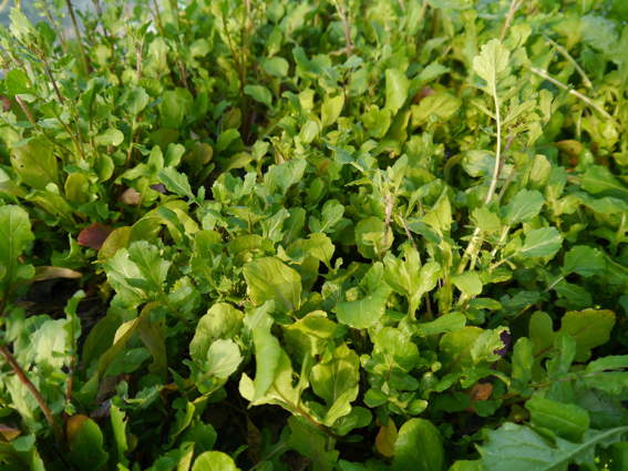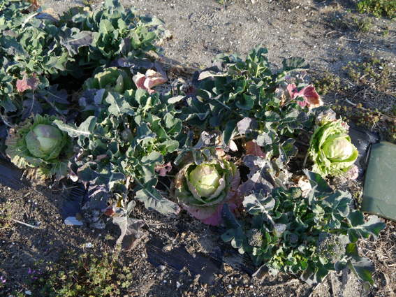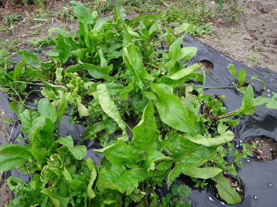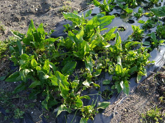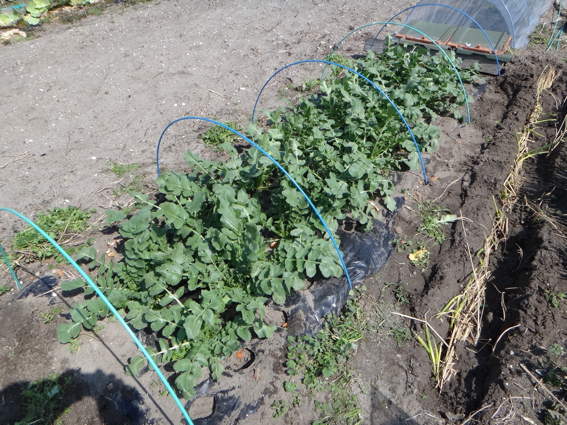 先週ビニールトンネルを外したために大根の葉っぱが霜害にあいました