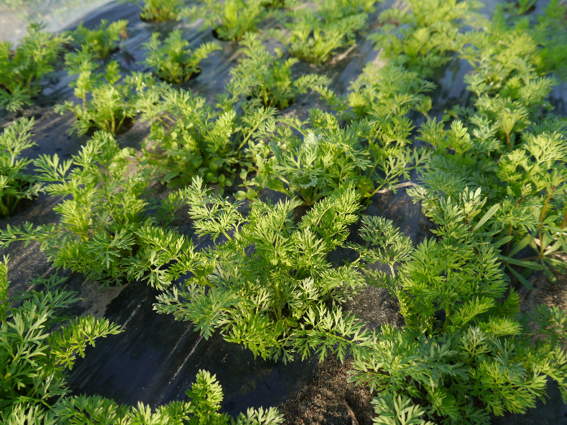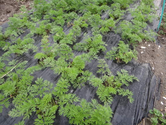 溝を埋め戻してからビニールマルチをかけて土で固定しました