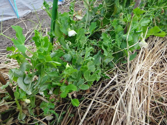 スナップエンドウの支柱を立て雑草を取っているゆり様