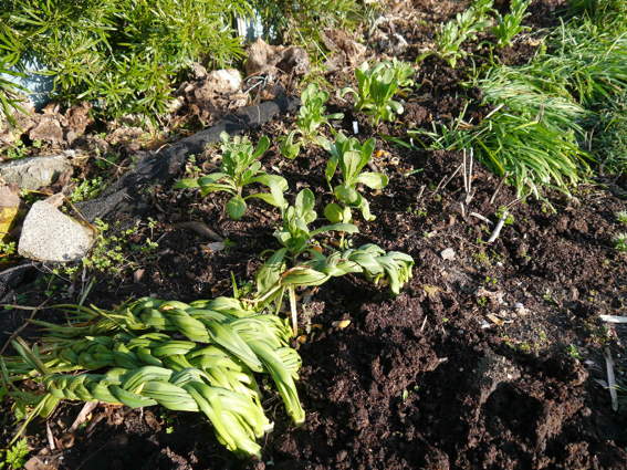 これはニンニク畑です 雑草を抜いてから肥料をあげました