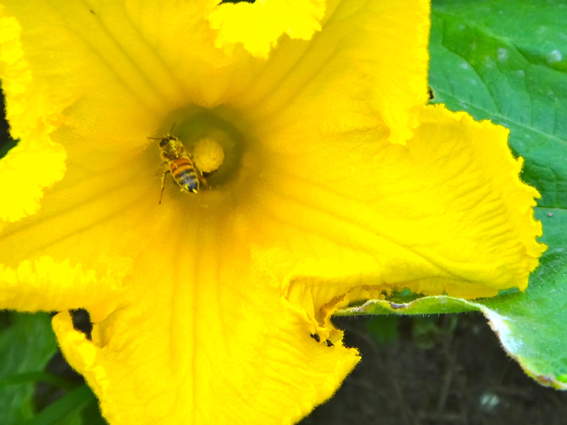 まずカボチャの人工授粉 次に人参畑の用意をし