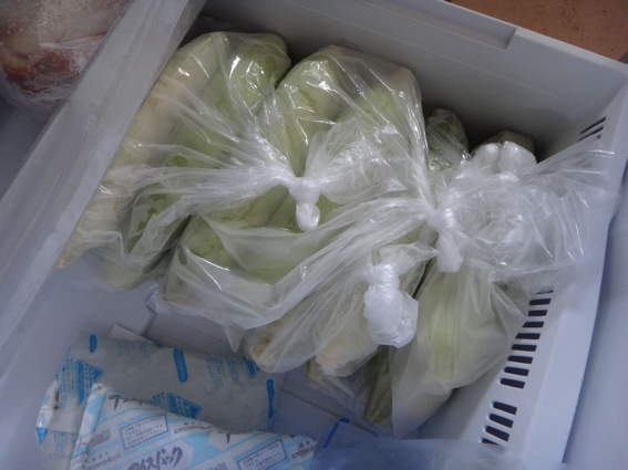 トウモロコシ20本を皮付きで2本ずつ袋に入れて冷凍保存します