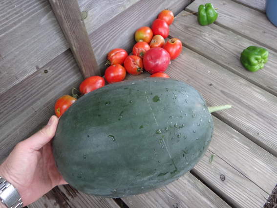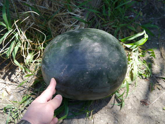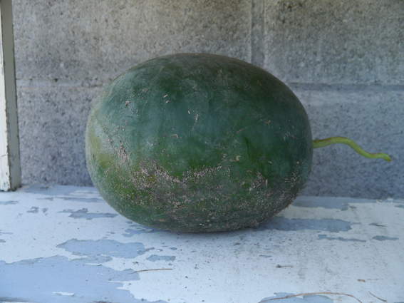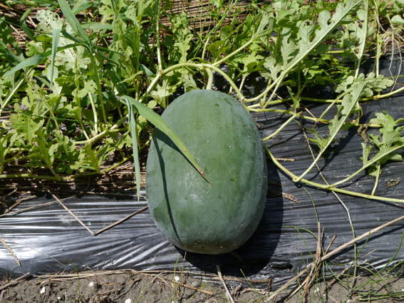 黒スイカを収穫しました ちょっと肉厚でしたが甘かったですよ