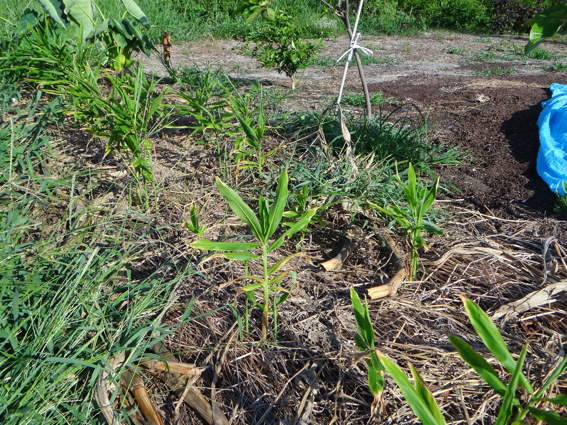 もう 完全に水不足です 葉っぱが巻いてしまっているショウガ